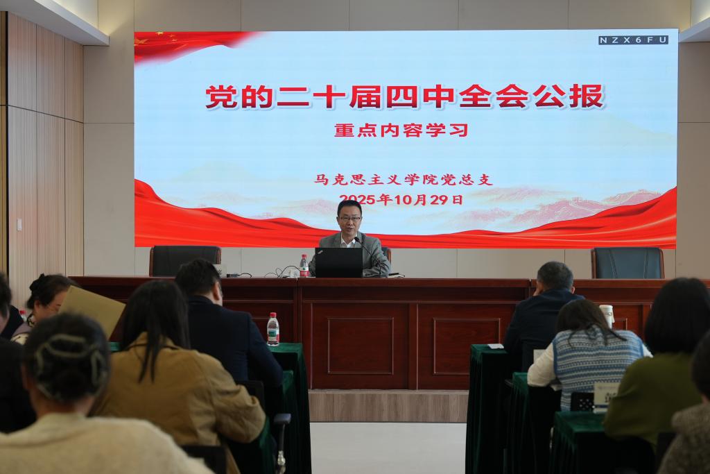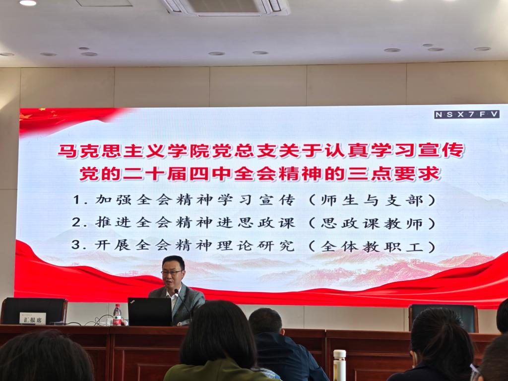 10月29日下午,马克思主义学院党总支在富春校区11019会议室召开全院教师大会,集中部署学习党的二十届四中全会精神。会议由学院党总支书记方年根主持,学院全体教职员工参加。