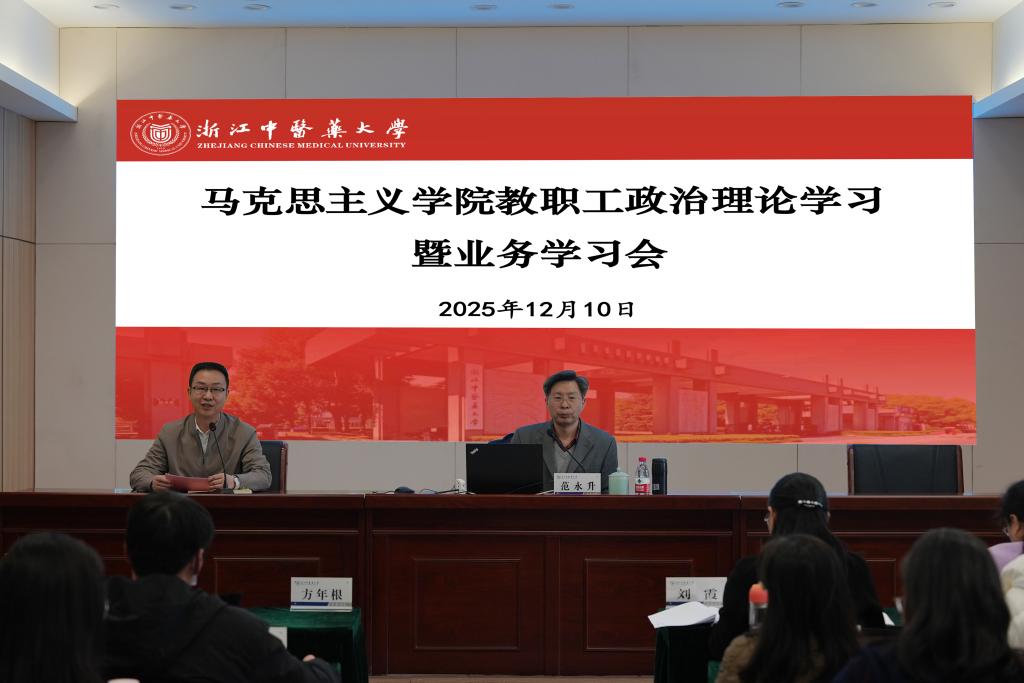 方年根强调,从业务学习会的角度来讲,我们马院提出创建“本草润心·思政铸魂”这一具有学校辨识度的思政课教学品牌。中医药文化是中华优秀传统文化的重要组成部分,作为高等中医药院校的思政课教师,如何提升我们的中医药文化素养,对于增强为党育人、为国育才的使命担当,助力学校创建一流中医药大学和高水平大学来讲,既十分重要,也非常必要。范校长的精彩报告,为我们学院2025年的“名师指路”工程画了一个圆满句号,相信大家听了之后受益匪浅、感悟良多,希望大家通过“名师指路”促学习、强能力、育品牌,为积极建设“四个马院”和助力学校创建一流增光添彩。