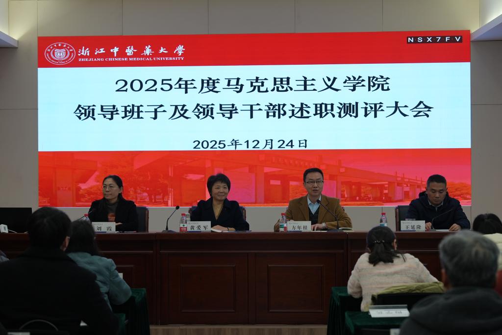 12月24日下午,马克思主义学院在富春校区11019会议室召开2025年度领导班子及领导干部述职测评会。学院分管校领导、校党委副书记黄爱军出席。会议由学院党总支书记、院长方年根主持,学院全体教职员工参加。